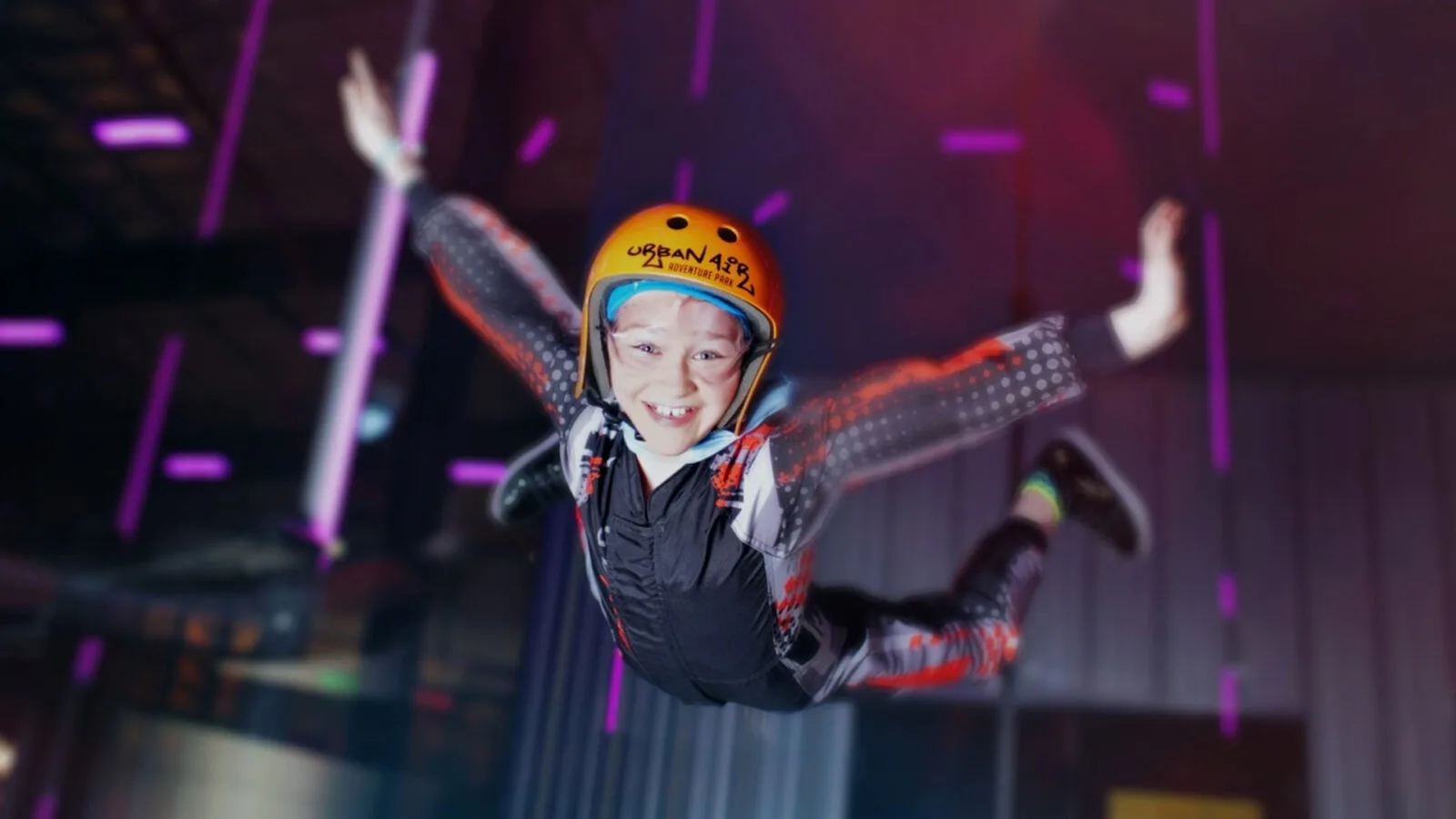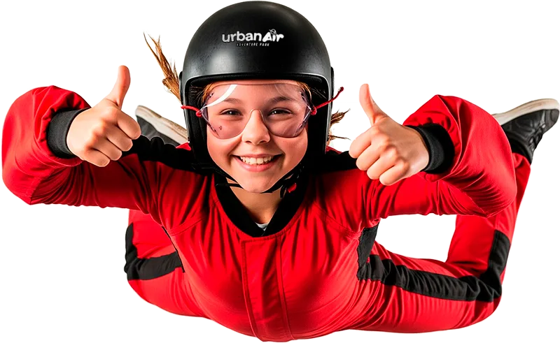 Indoor skydiving at Urban Air allows you to experience true free fall conditions, just like a real skydive, without the dangers of jumping out of an airplane because you are indoors in a wind tunnel. You’ll be able to feel the thrill of skydiving without the fear of heights or wind resistance.